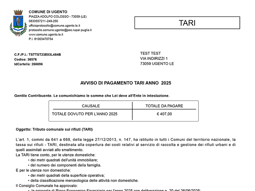- avendo cura di presentare, al momento del ritiro delle attrezzature richieste, copia dell’ultimo avviso TARI ricevuto, oppure, per le nuove utenze, della dichiarazione TARI rilasciata dal Comune (vedere esempi di avviso e dichiarazioni nella galleria sottostante
