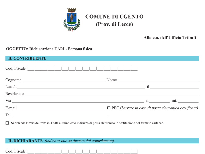 - va compilato il modulo online scegliendo prima la propria categoria di utenza. Importante, in caso di difficoltà ad utilizzare il modulo online: la compilazione dello stesso potrà essere effettuata anche da persona terza (parente o conoscente), ma i dati inseriti dovranno essere quelli dell'intestatario TARI e di questi dovrà essere la documentazione da presentare al momento del ritiro delle attrezzature richieste,